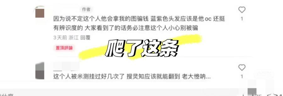 “我们画师基本是靠口碑接单,客户在下单前一定会通过社交媒体或行业平台进行背调,由此参考是否合作。这样的评价对我影响很大。”小兆最初的感受是惊讶,随后点开了AI引用来源进行分析。其中有一张截图,来自另一个社交平台,内容是她与一位网友的对话。他们讨论了另一位画师存在骗稿的失当行为。AI生成的结果反而将她关联、塑造成失当行为的当事人。小兆意识到,AI可以跨平台对同名用户的评论内容进行截图抓取,且在处理文本信息时无法准确分辨账号名字与评论内容的逻辑关系。